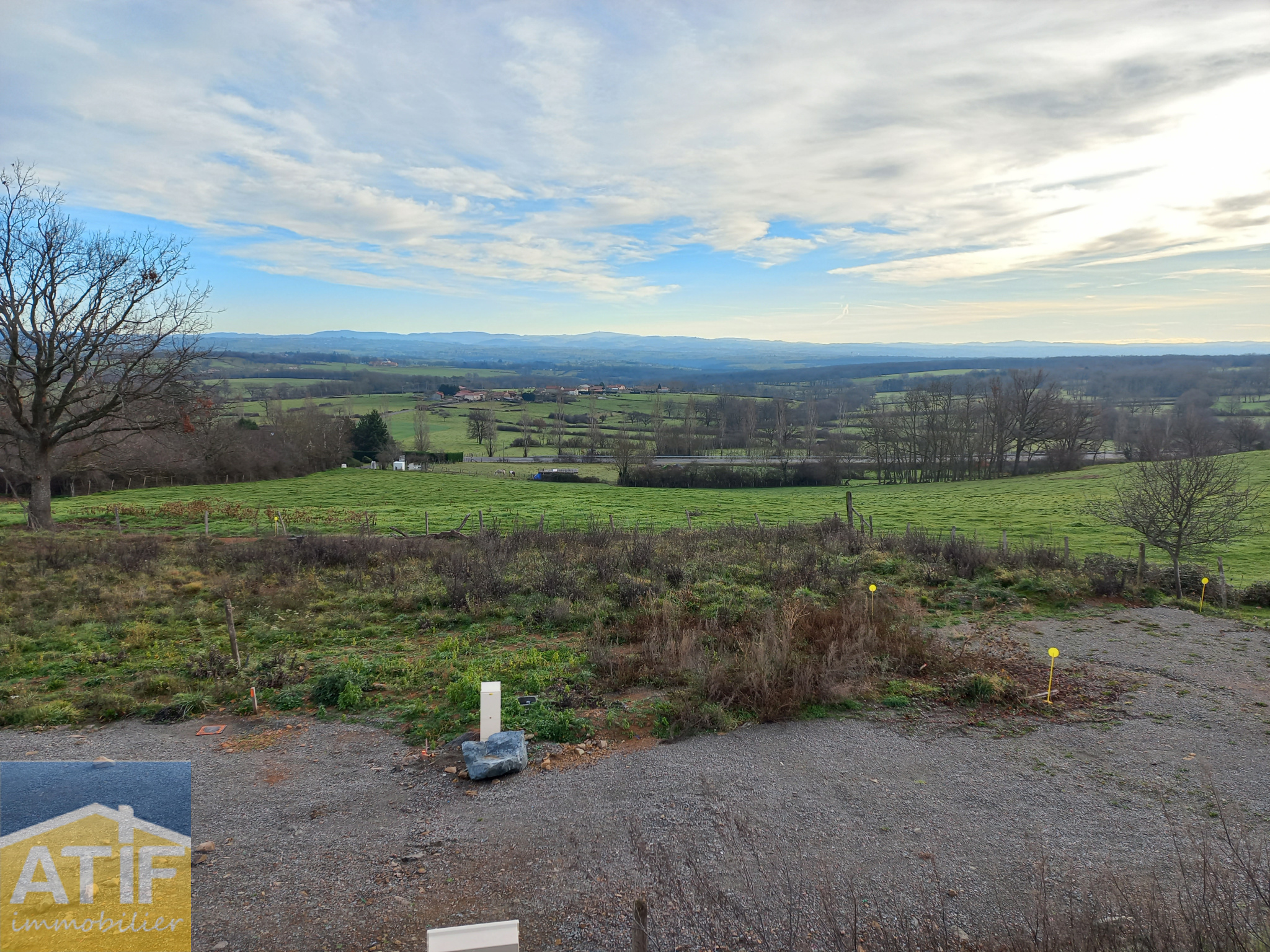 ATIF immobilier, Claudy CARTON vous propose à 5 minutes de l'autoroute A89, ce terrain constructible de 652 m² viabilisé avec une jolie vue.