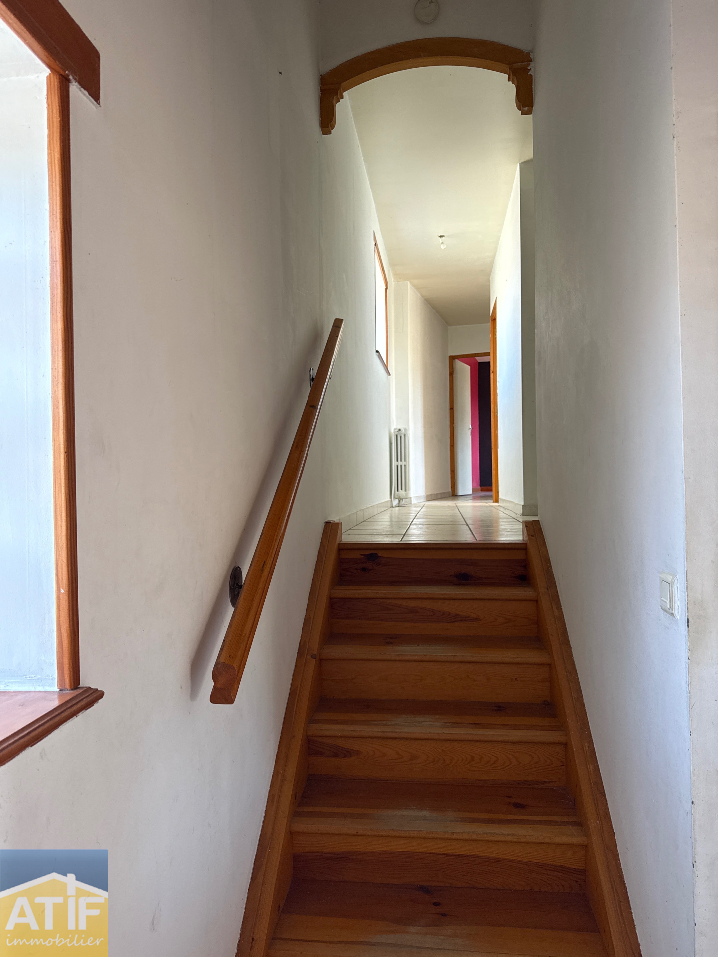 ATIF immobilier, Claudy CARTON vous propose cette maison de 110 m² habitable. Elle offre une pièce de vie avec cuisine, trois chambres, deux salles d'eau, deux w-c, un bureau, une grande chaufferie et un préau. Chauffage central au fuel, micro station. Terrain clos de 866 m².Â